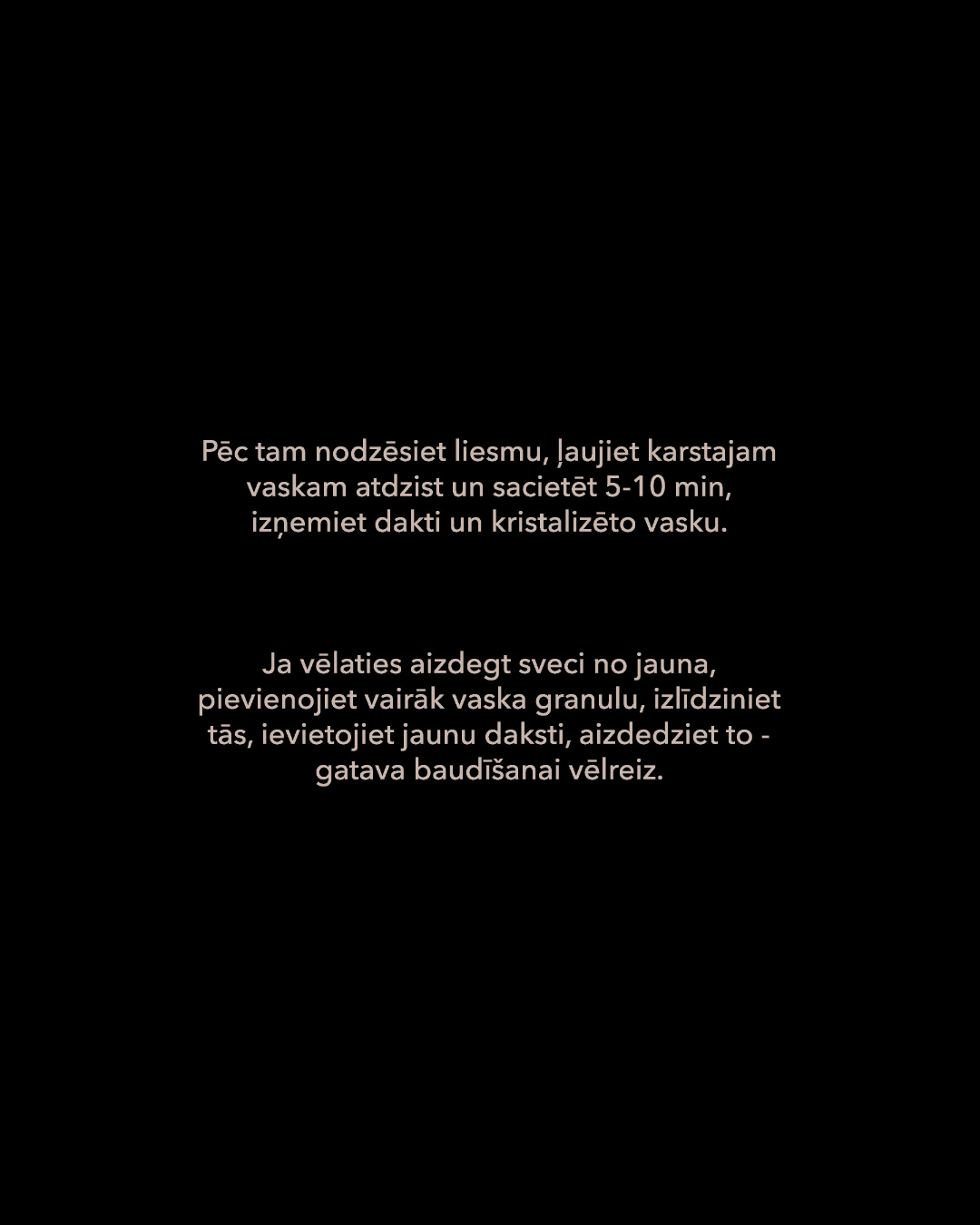 Veidotas pēc speicāli izstrādātas formulas, kuras sastāvā tiek izmantots 100% augu vasks.